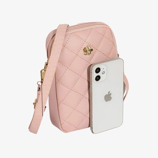 Sac étui de téléphone bandoulière en cuir rose + 1 coque à -50% !