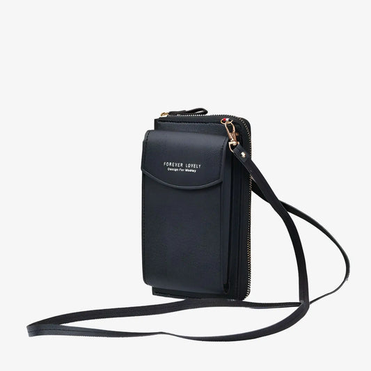 Sac bandoulière de téléphone avec écran tactile en cuir noir + 1 coque à -50% !