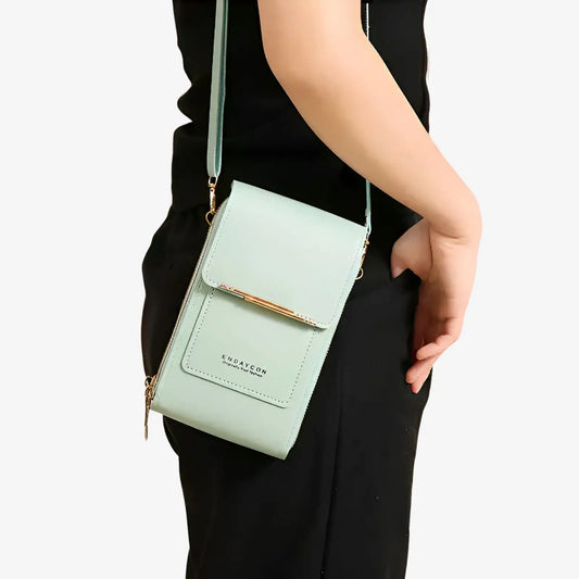 Sac bandoulière de téléphone avec écran tactile en cuir vert d'eau + 1 coque à -50% !