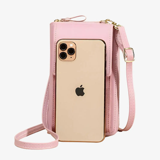 Sac bandoulière de téléphone avec écran tactile en cuir rose + 1 coque à -50% !